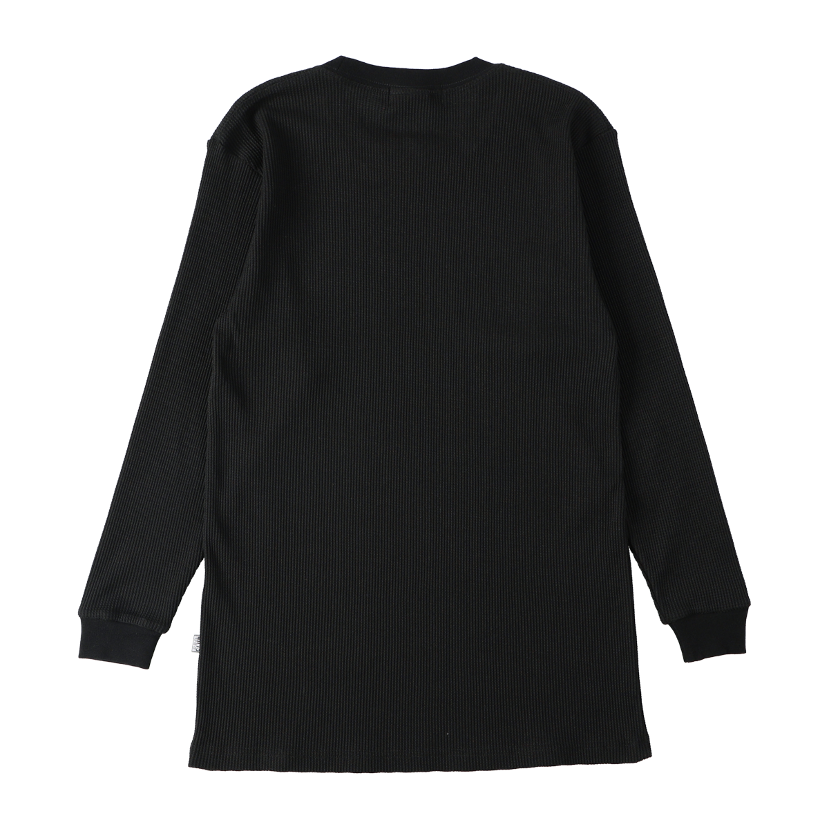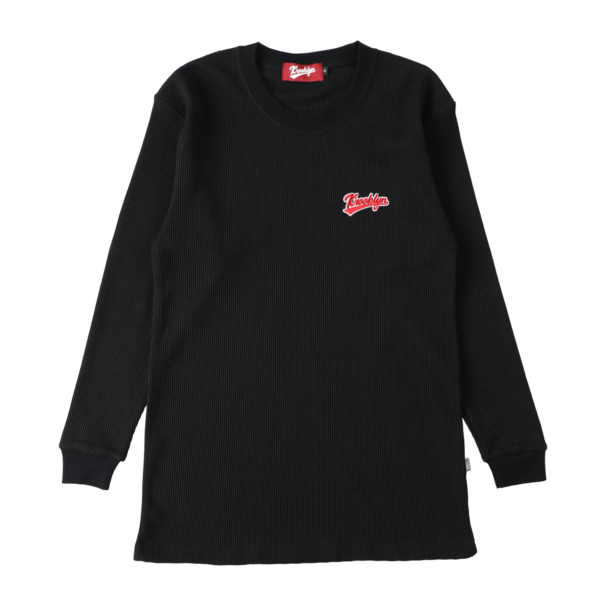 Thermal LS Shirt 着心地の良さが特徴的なサーマル素材のロングスリーブTシャツ。ブランドロゴが左胸に入ったシンプルな1着である。BlackとBrownの2色展開です。 サイズ---着丈/身幅/袖丈/ S-68/44/41 M—71/51/45 L---75/54/48 XL—78/58/52